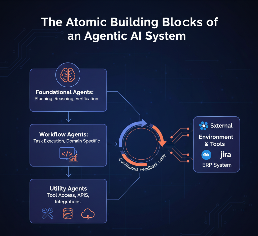 To ensure reliability and scalability, modern systems rely on a modular “Atomic” structure. By breaking down the anatomy of an agentic AI system into specialized units, you create a more resilient ecosystem: