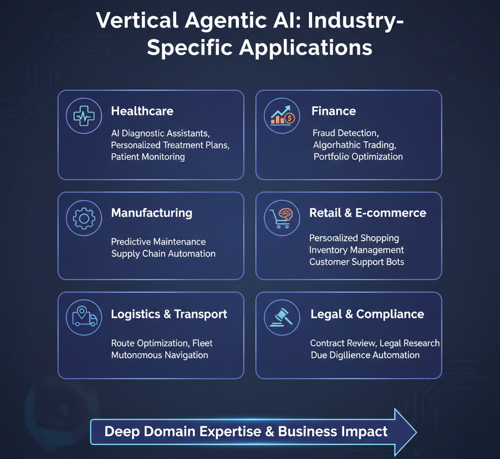The true ROI of a well-architected Agentic AI system is realized when it moves beyond general tasks and masters industry-specific challenges. We refer to these as Vertical Agents – autonomous systems designed with deep domain expertise rather than broad, shallow capabilities.
