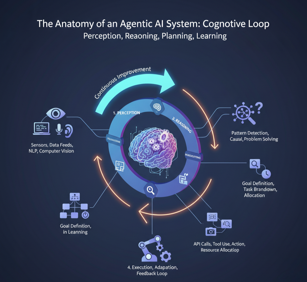 Understanding the anatomy of an agentic AI system is the difference between a chatbot that talks and an agent that works. By mastering the loop of Perception, Reasoning, Planning, and Execution, businesses can move beyond static scripts to truly autonomous AI agents.